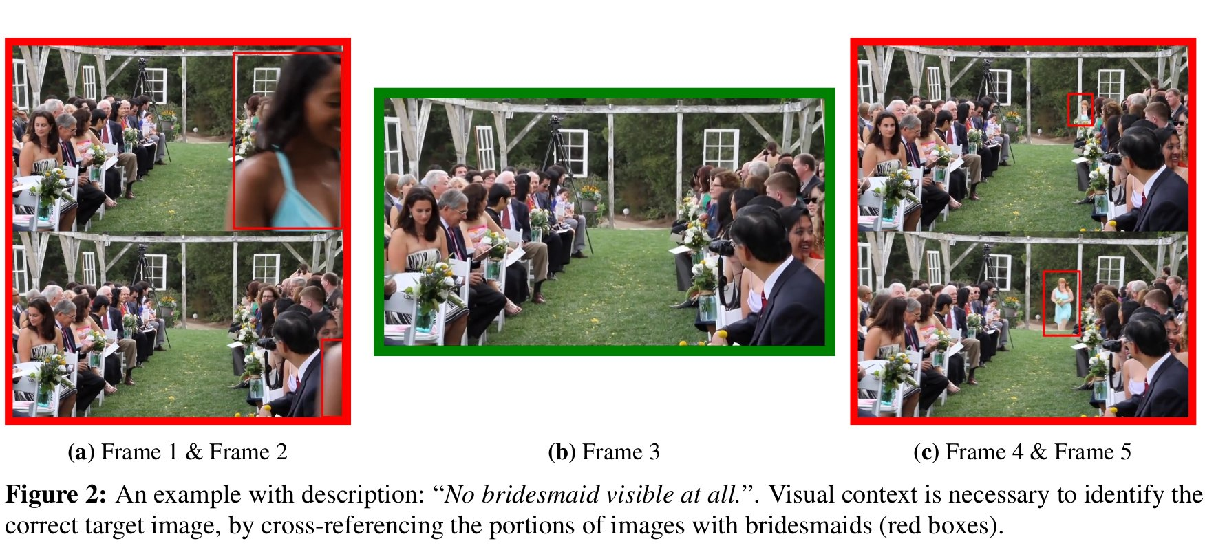 - Since the images are so similar, the salient aspects are often the same across frames and only non-salient aspects change. Focusing and zooming in on non-salient aspects (while also keeping salient ones in mind) is a new challenge for models!